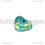Cabochon Cuore in alluminio e stoffa fantasia fiori azzurro 18x14mm